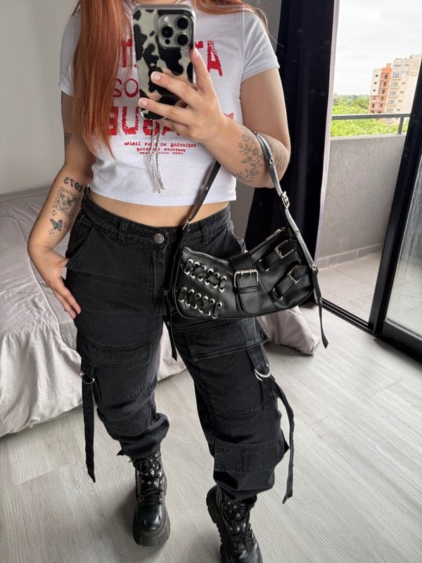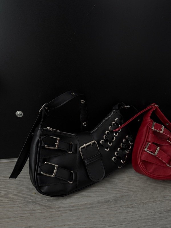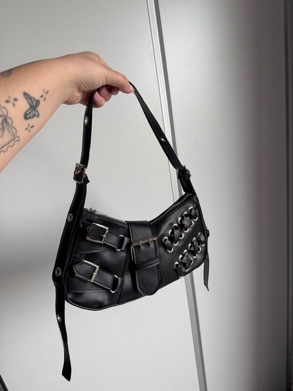 Baguette bag de eco cuero con detalles en plateado
