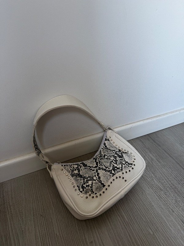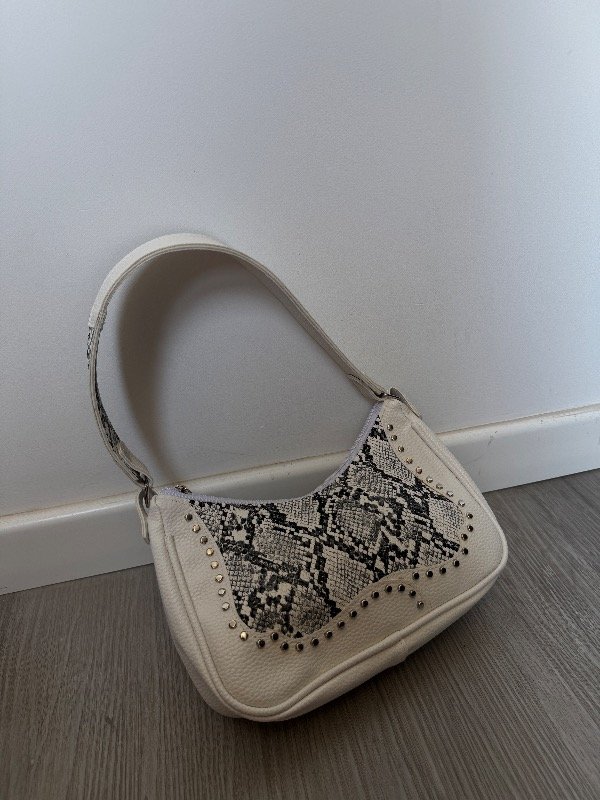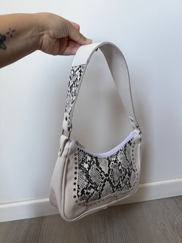 Baguette bag de eco cuero blancoy con reptil/ tachas en el frente